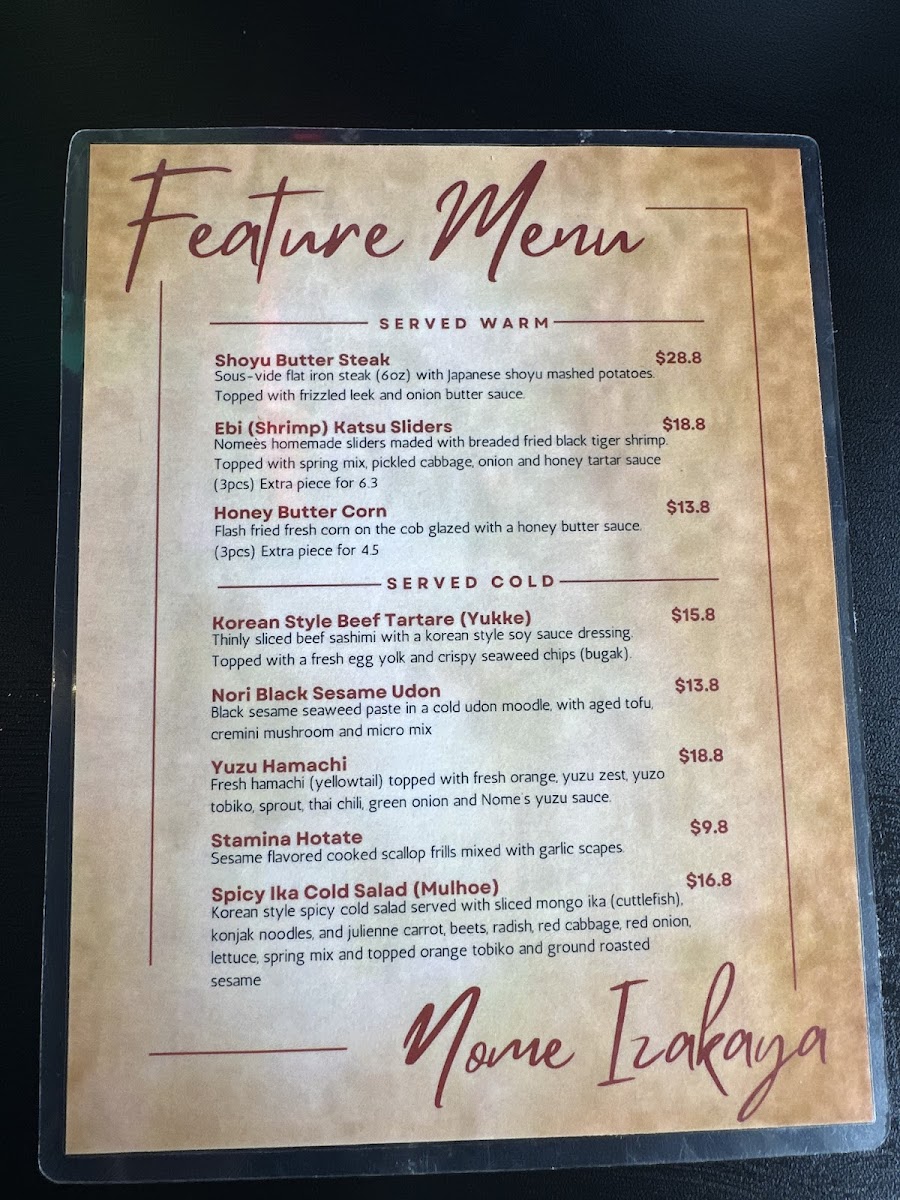 Nome Izakaya Toronto Menu